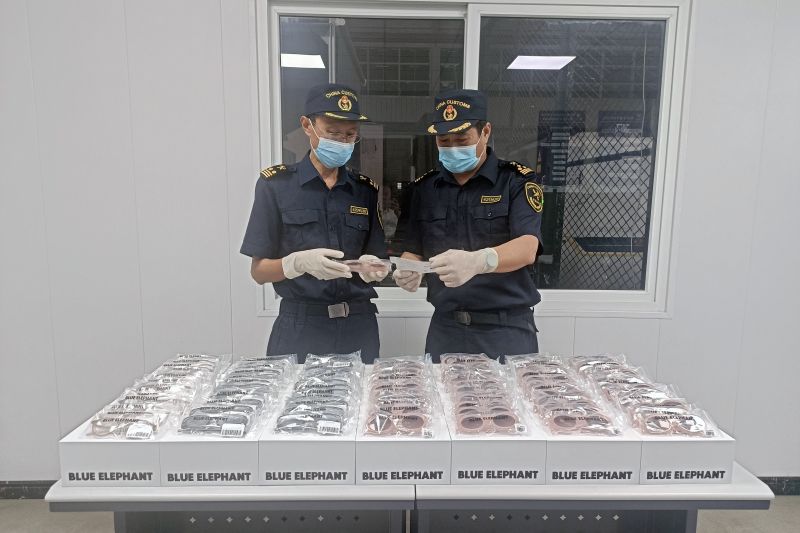 海關(guān)關(guān)員在對1票申報品名為“套頭衫”的貨物進行機檢查驗時,發(fā)現(xiàn)圖像異常。經(jīng)開箱查驗,發(fā)現(xiàn)貨物中夾藏大量“藍象(BLUE ELEPHANT)”品牌墨鏡,共138副,企業(yè)無法提供授權(quán)證明。經(jīng)權(quán)利人確認,該批墨鏡侵犯權(quán)利人商標權(quán)。