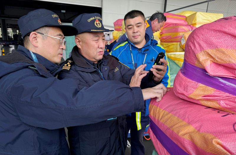 圖為:海關(guān)關(guān)員利用“空側(cè)直轉(zhuǎn)”模式對(duì)貨物進(jìn)行監(jiān)管 侯鵬/攝