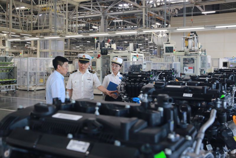 圖為:海關(guān)關(guān)員到發(fā)動(dòng)機(jī)生產(chǎn)企業(yè)調(diào)研 石萬(wàn)里/攝