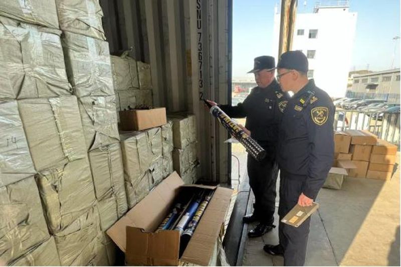 威海海關(guān)查獲夾藏出口煙花爆竹71噸(圖)