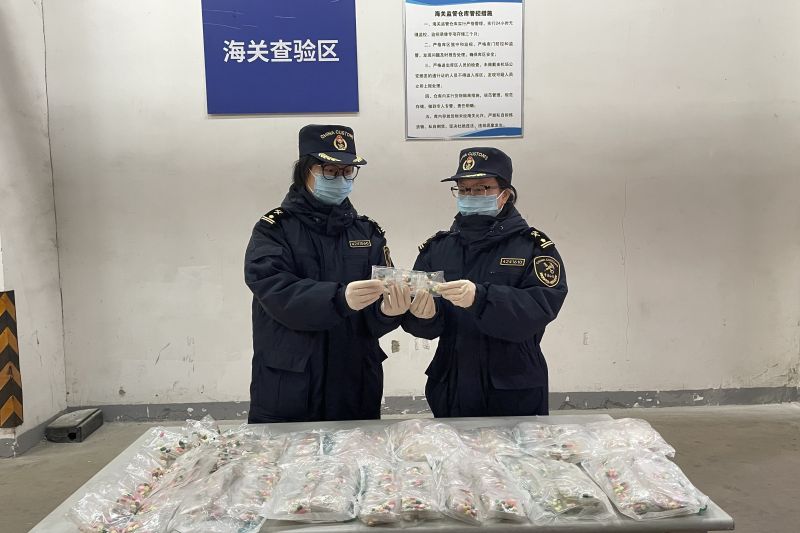 海關關員在對1批空運進口貨物進行監(jiān)管時,發(fā)現(xiàn)機檢圖像異常。經(jīng)人工查驗,發(fā)現(xiàn)進口服裝中夾藏有不同顏色、不同形狀、僅使用透明塑料袋簡單包裝的彩色藥片,且包裝上缺少生產(chǎn)日期、生產(chǎn)廠家及質(zhì)量合格證明等產(chǎn)品信息。經(jīng)清查共計2.58萬粒。經(jīng)現(xiàn)場快速檢測,藥片呈甲基苯丙胺陽性。