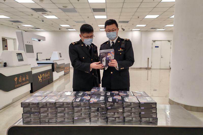 煙臺(tái)海關(guān)查獲違規(guī)攜帶進(jìn)境紅外測(cè)溫槍66件(圖)
