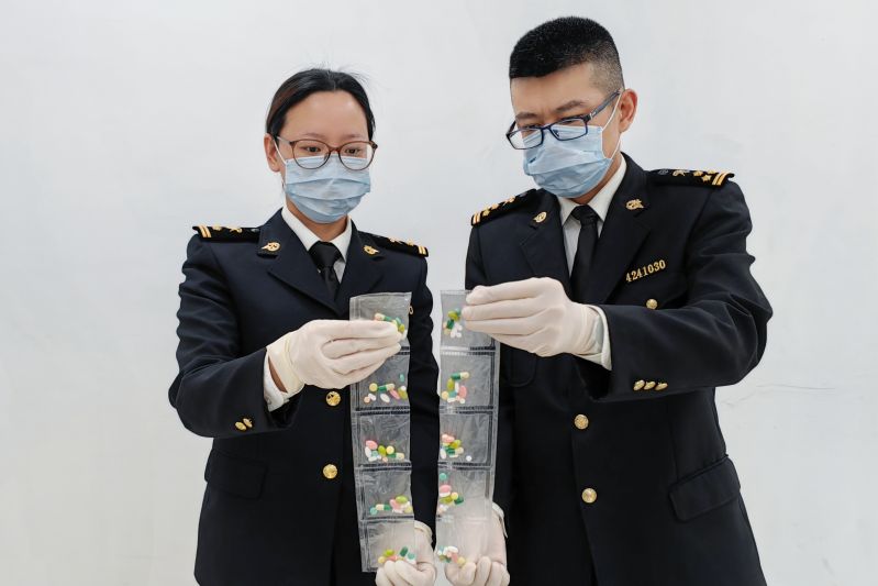 煙臺海關(guān)查獲違規(guī)攜帶進(jìn)境“三無”減肥產(chǎn)品539粒(圖)