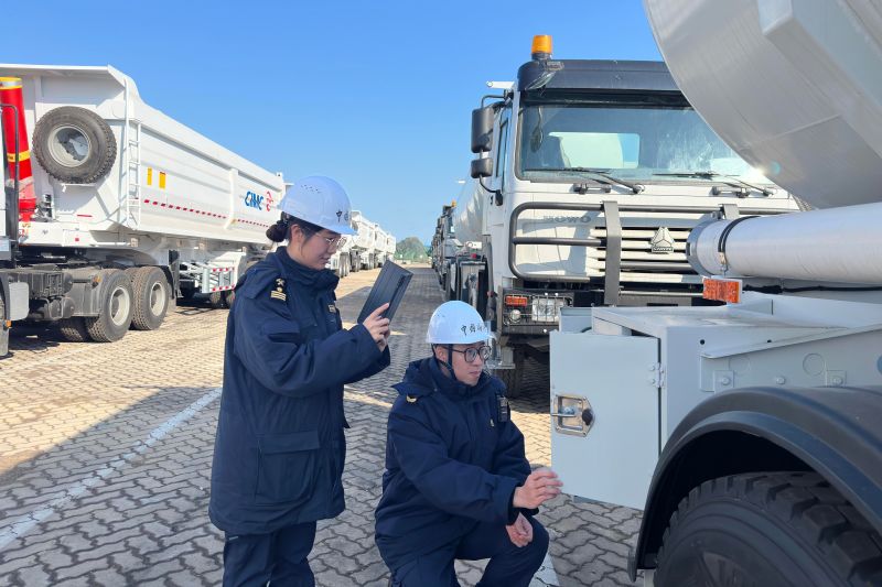 圖為:海關關員對工程機械進行現(xiàn)場監(jiān)管 韓云婷/攝